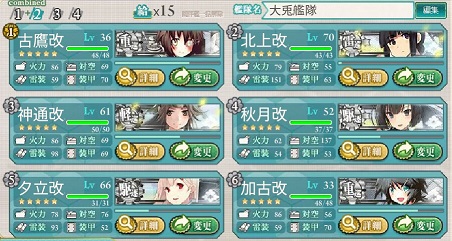 上をキャプチャーして1戦した後、第一の羽黒と第二の小鷹を入れ替えてます。