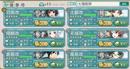 上をキャプチャーして1戦した後、第一の羽黒と第二の小鷹を入れ替えてます。